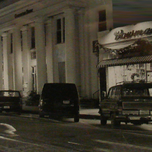 Black and white photographs located to the right of the Adult Reference Desk in the Main Reading Room.