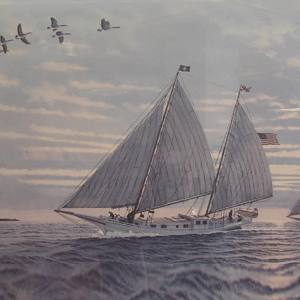 A limited edition lithograph by John Poague MacLeod hangs above the fireplace in the Northport Library. The lithograph was a gift to Library from the McKays.