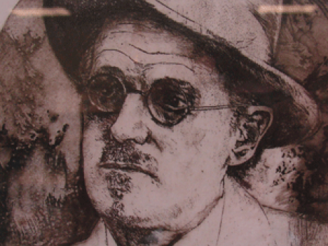 One of three limited edition lithographs of Samuel Beckett, Walt Whitman, and James Joyce by artist Jack Coughlin adorn the wall in the Northport Library Café. The lithographs were a gift to the library from Michael L. Glennon.