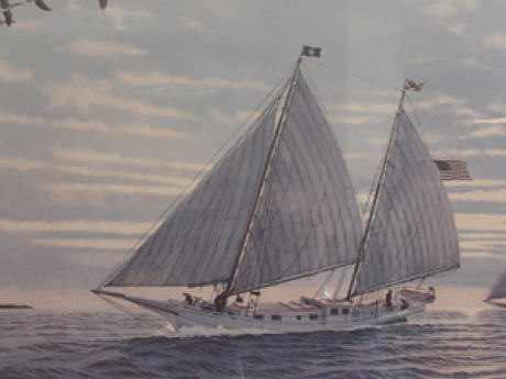 A limited edition lithograph by John Poague MacLeod hangs above the fireplace in the Northport Library. The lithograph was a gift to Library from the McKays.