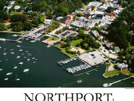 Aerial photography of Northport Harbor by photographer Stephen Mastrorocco located in the main lobby.