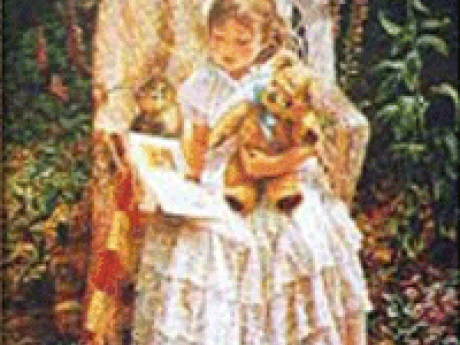 This exquisite painting was given to the East Northport Library and is located behind the circulation desk in the Main Lobby. The painting has been dedicated to the memory of Rhoda M. Brunson.