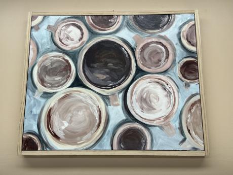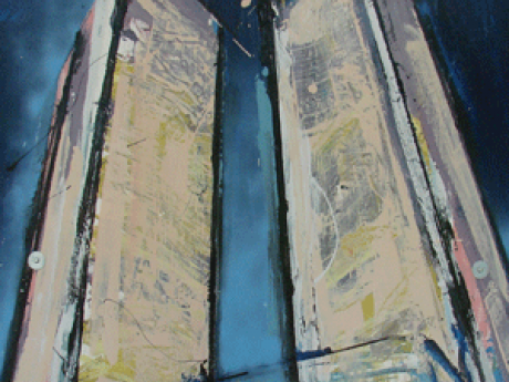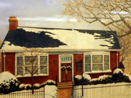 This exquisite painting was given to the East Northport Library and is located behind the circulation desk in the Main Lobby. The painting has been dedicated to the memory of Rhoda M. Brunson.