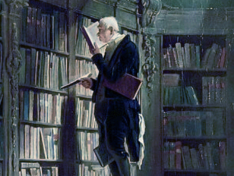 The world's most famous and beloved image of a bibliophile, "The Bookworm" [Der Buecherwurm] was painted in oil on