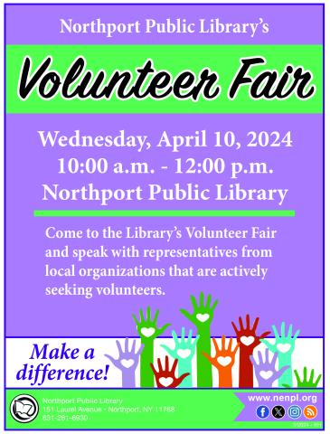 Come to the Library's Volunteer Fair and speak with representatives from local organizations that are actively seeking volunteers. No registration required.