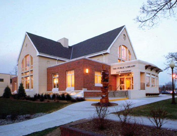 The library aided the World War I effort through its participation in a program to send books to troops overseas. During the Depression, the library’s downstairs meeting room became a women’s workroom. Local women worked in shifts, earning $2.50 a day mending donated clothing that was then distributed to families in need.